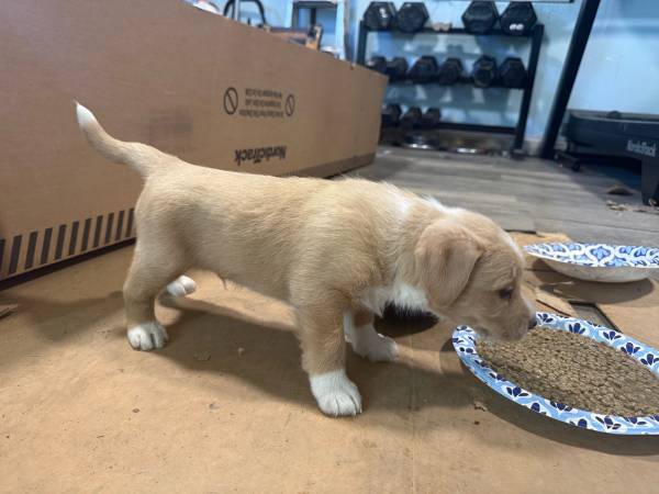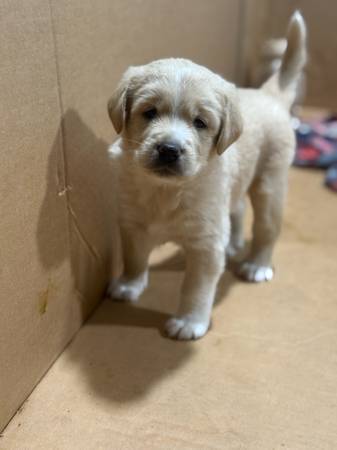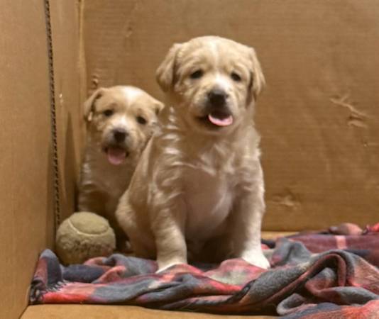 Rehoming 2 male puppies. puppies born Oct. 18. Mom is a lab mix and dad is a poodle mix. Small/medium size. Small rehoming fee.