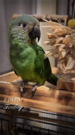 He’s male dusky conure 1 1/2 years super tamed . Healthy bird and good feathers. Not loud like other conures. Pretty good bird. If interested plz call .