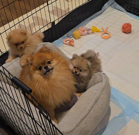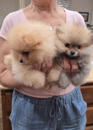 Adorable orange and orange sable female Pomeranians, very loveable, calm and playful personality. Ready for a loving home. 2 months old vaccinated and dewormed. Potty pad trained. Call