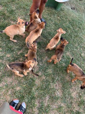 german shepherd mix puppies 10 weeks old. one boy available he is 100. 5 girls available they are 150. pictures of parents included. they do not have any shots yet. in torrance/la area.