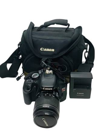 Description: For sale, we have a Canon EOS Rebel T3i Digital Camera with Canon EFS 18-55mm Lens. This pre-owned camera is in good cosmetic condition with normal signs of use. The included Canon camera bag shows minor dust and dirt from prior handling but remains fully functional. Overall, the setup is clean and ready for use.