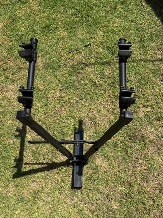 Clamps around 2" hitch bar. Like new - never used. Collapses almost flat