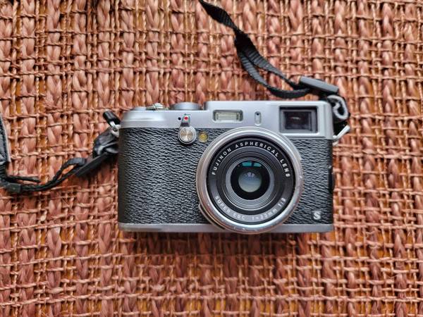Fuji X100S with wide angle converter, metal sunshade and accessories. Includes X100S 16.3 mp camera w/metal lens cap. Also included: Fuji WCL-X100 metal wide angle conversion lens to 28 mm equivalent (screws onto existing lens with no loss of image quality, per Fuji); UV Haze filter; Fuji screw-on metal sun shade; 3 rechargeable batteries (2 Fuji + 1 Promaster); USB camera cable; 2 battery rechargers; small case for all (except chargers). Pic 3 shows camera with sunshade; pic 4 shows with wide angle conversion lens + sunshade. Great condition. $695.00 for everything.
