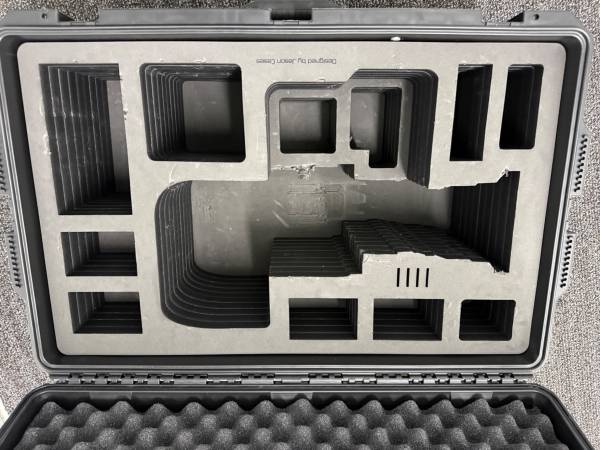 Jason Cases Custom Foam Pelican 1610 Case for Sony FX9 w/ 28-135 Lens. Has wheels and retractable handle. Link to new: https://www.jasoncases.com/store/product/sony-fx9-28-135mm-lens-case/