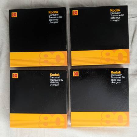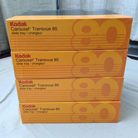 4 Kodak Slide Carousels / Trays Transvue 80 w/Boxes, Labels & Logs -...