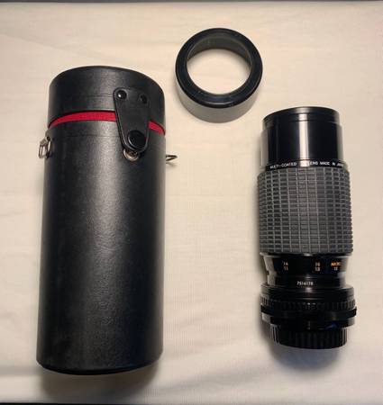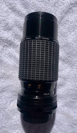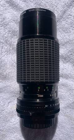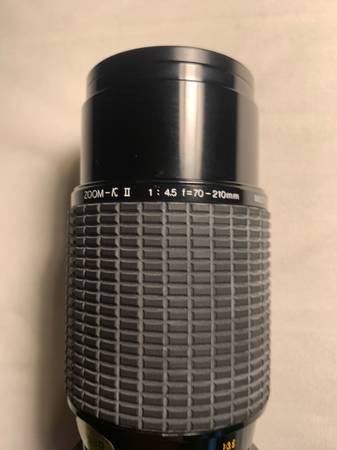 Zoom 70 - 210mm 1:4-5 is a high-quality telephoto zoom lens designed for Konica cameras. Made in Japan, this lens is lightweight at 1.4 pounds and compact with a length of 5.6”. Comes with...