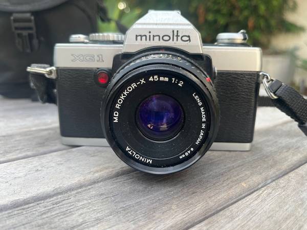 Minolta XG 1 35mm camera - 45mm lens - XG1 Vintage SLR Camera Circa 1980. Original Owner. Includes neck strap and (newer) carrying case