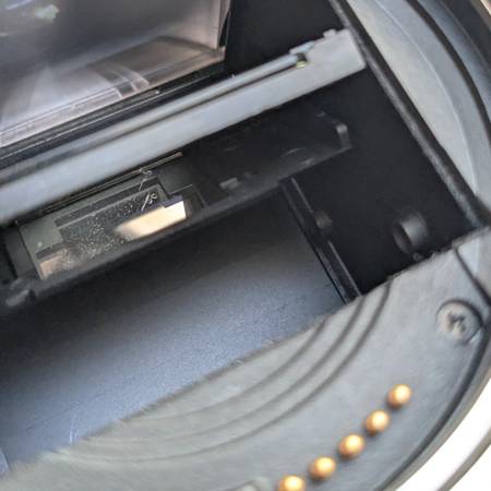-- the battery slot itself has no damage or corrosion and is in full working condition. the dummy battery cable slot on the camera itself is removable and replaceable without issue.