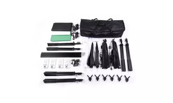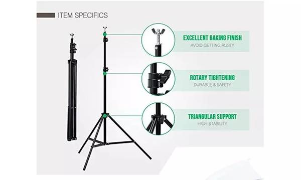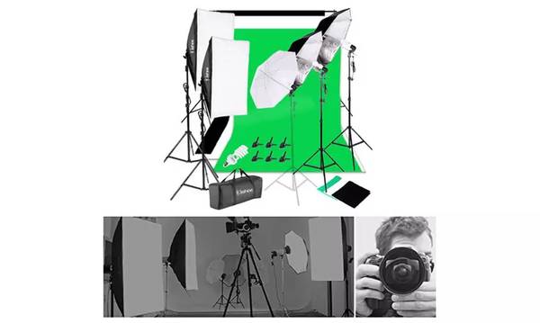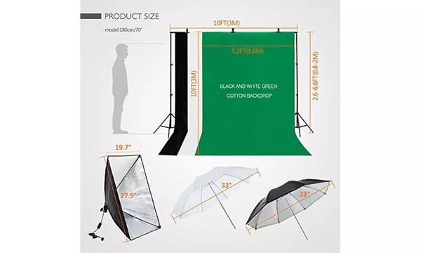 Features:1. Made of high quality material, it is durable and sturdy2. It is easy to collect all the accessories and can be taken outside conveniently3. It is brand new and high quality4. Ultimate soften light stream and remove shadow to make perfect shooting5. Set up in mins to offer you a professional photo studio6. Umbrella-style softbox, it is easy to assambleSpecifications:Basic Information1. Brand: Kshioe2. Background Stand Size: 2m*3m3. Background Cloth Material: Non-woven Fabrics4. Fish Mouth Clamp Color: Black5. Plug Type: US Standard6. Color Temperature: 6400K7. Non-woven Fabrics Color: Black & White & Green Light Holder1. Surface: Smooth Shape to Handle2. Socket Type: Fire-resistant Plastic Socket(E26/E27) Light Stand 1. Adjustable Height: Min 32"-Max77" Umbrella Reflector 1. Size: Diagonal Line 32" 2. Material: Made of High Quality Nylon Material Softbox 1. 2 functions in 1: Softbox, Reflector (with a Diffuser) 2. Umbrella-style Softbox: Easy to Assamble Light Bulb1. Type: Energy Saving Compact Fluorescent Spiral Bulb2. Base Type: Regular Srew Bace E263. Color Temperature: 6400K 4. Watts: 45W Package Includes:1 x 2*3m Background Stand(4Pcs Cross Bar)3 x 1.6*3m Non-woven Fabrics(Black & White & Green) 2 x 5070 Single Lamphead US Soft Light Boxes4 x 2m Light Stands4 x 45W Photography Light Bulbs1 x 33" White Umbrella2 x 33" Silver Black Umbrellas3 x Single Head Lighs(US Plug Cable2.8m)6 x Fish Mouth Clamps(Black)1 x Carry Bag1 x English Manual & English Installation Instruction