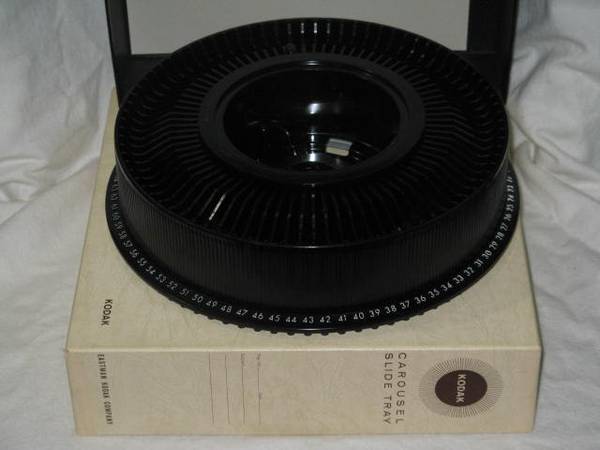 (10) Kodak carousel slide trays 80ct or 140ct, $50. 35mm slide metal storage boxes $20./2 for $30. Each box holds approximately 750 slides. Kodak Carousel slide projector with tray and remote, $95., extra new bulb for any Kodak carousel projector $15., Kodak slide stack loader $25., Kodak 25ft. remote extension cord $15.