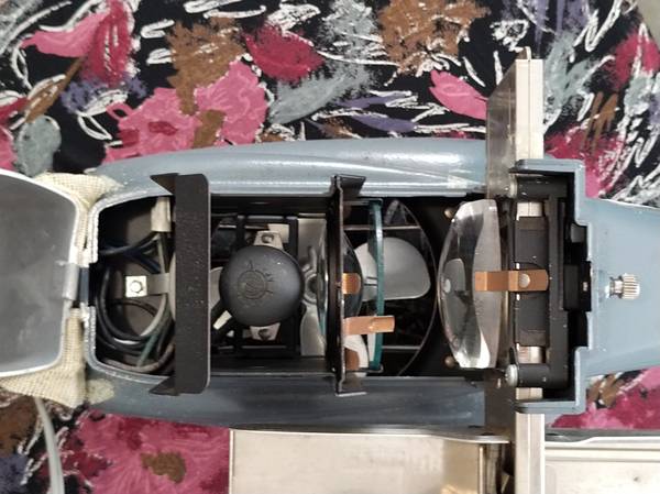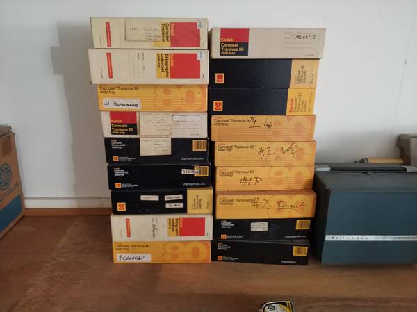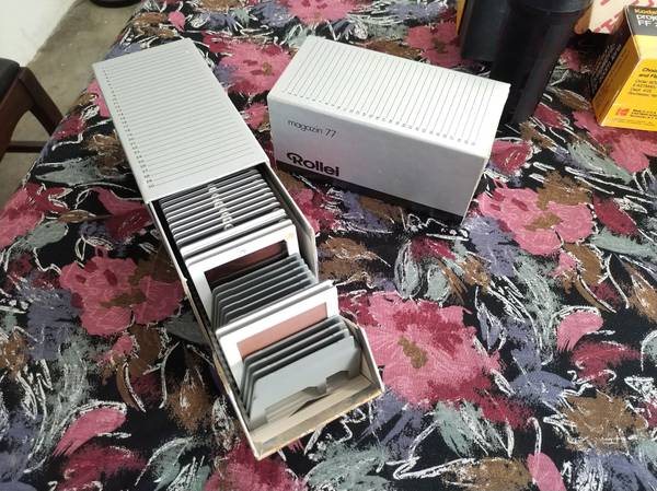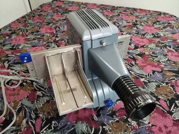 1 Bremberger 6x6 slides projector with 2 Rollei 30-slide magazines with misc slides