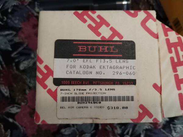 1 Buhl Optical 7" 178mm f:3.5 lens (for Kodak projector)
