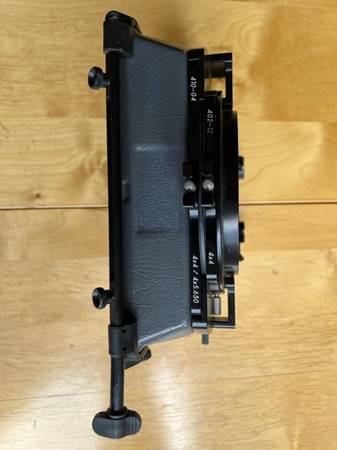 Excellent condition professional Chrosziel matte box with folding eyebrow #450-11 and two trays 1x 4"x 4" rotating tray, suitable for polarizer #402-12 1x 4"x 4.65" tray suitable for effects, ND or...