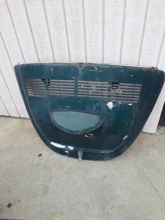VW DECKLID COMPLETE INCLUDES: HINGES LID LATCH LICENSE PLATE LIGHT PAINT IS ROUGH BUT LID IS PRETTY STRAIGHT EXCEPT FOR SMALL DENT AT VENT AREA I THINK IT CAME OFF A 1975 BUG PROBABLY FITS MULTIPLE...