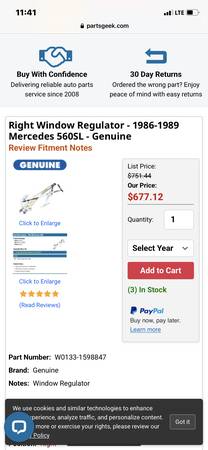 Mercedes R107 front left window regulator Original Mercedes Benz part New one is probably 7-800$ More info