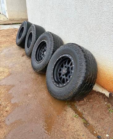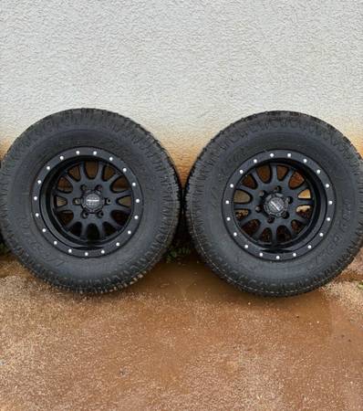 Still has good life on the tires Rims are clean Tire size 285/70r17 Toss offer Need them gone For chevy Or trade for tools