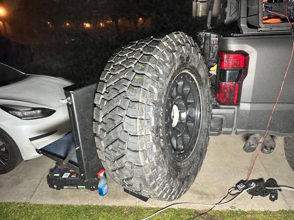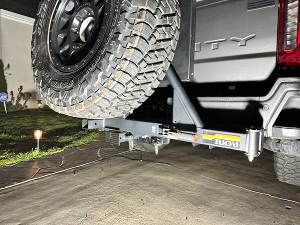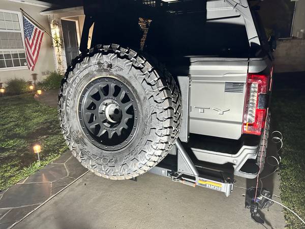 I have a basically brand new heavy duty RiGd https://www.rigdsupply.com/ Supply Mega-Fit Spare Ultra Hitch Mount with the Mega Fold Down Camping Table. I purchased this for my 2023 Ford F250 Lariat Tremor for a 37" full size spare. Used 2-3 times. Has some very minor scratches from taking it on & off but basically brand new. Original sticker price for package was over $2200.00 (have receipt (purchased less than 1 year ago) - asking $1500 OBO - FYI.....RiGd has a very long backlog and it will take months to receive your order....or you can have an awesome setup, immediately at a significant discount.