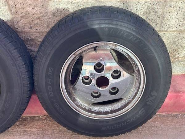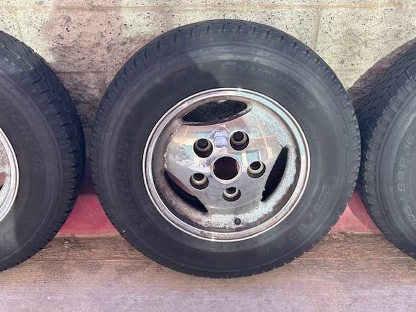 A full set of Range Rover Classic Wheels and Tires. Chromed Needs polish and refurbishment. $200 as is. I also have a full set of Lug Nuts which are $100 Fits Discovery 1 as well.