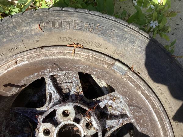 Set of 2, Bridgestone Potenza RE-010, 195/55 R15, 6" wheels mounted tires $40 each,