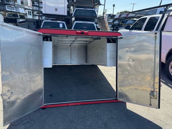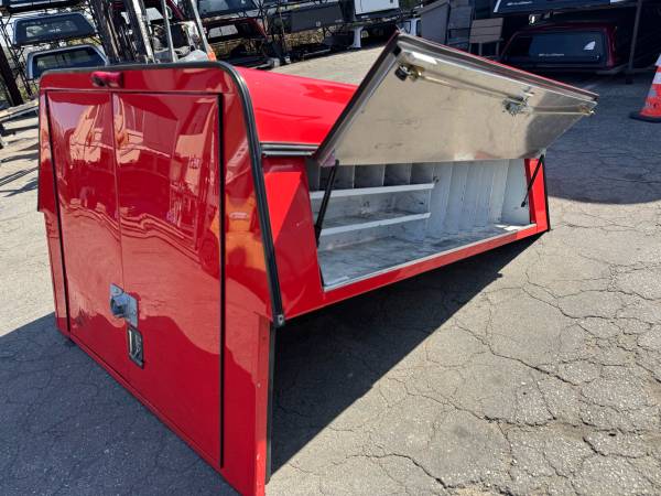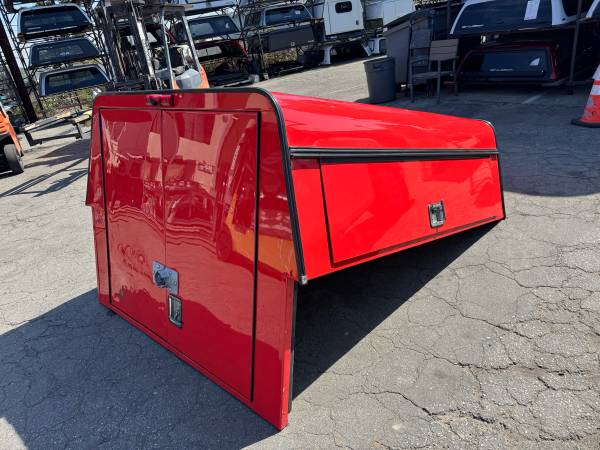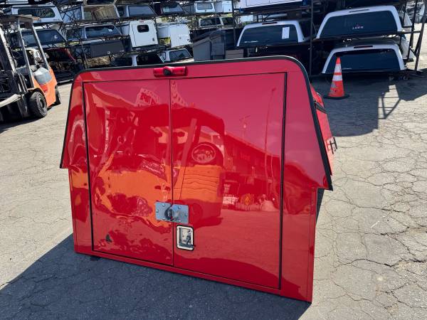 Selling a red commercial camper shell for 6.5 foot bed trucks . Ford 2007-25, tundra 2014-24, Chevy 2007-25 . In great shape, only a crease on one of the rear doors , side doors, double rear doors, key , tool boxes. Professional installation. Red, but they can be painted or wrapped .