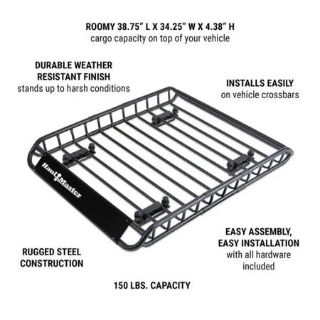 - Roomy 38.75 in. x 34.25 in. interior cargo capacity on top of your vehicle
