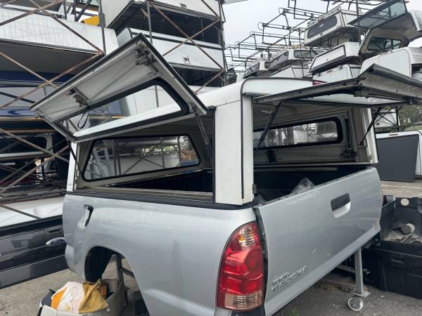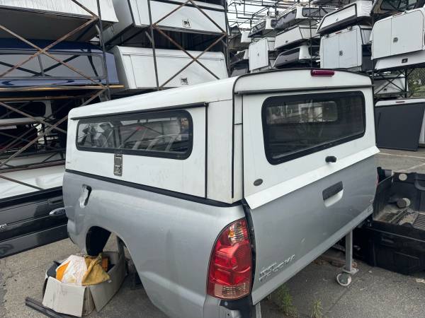 Selling a white commercial camper shell for 6 ft bed Tacoma trucks . 2005-15 body style . Side access doors , key , lift up rear door . Mounting clamps . Professional installation