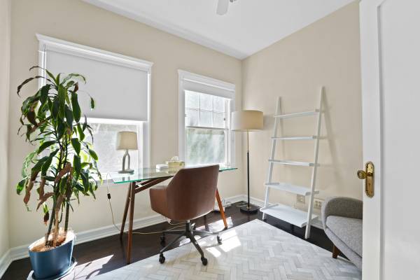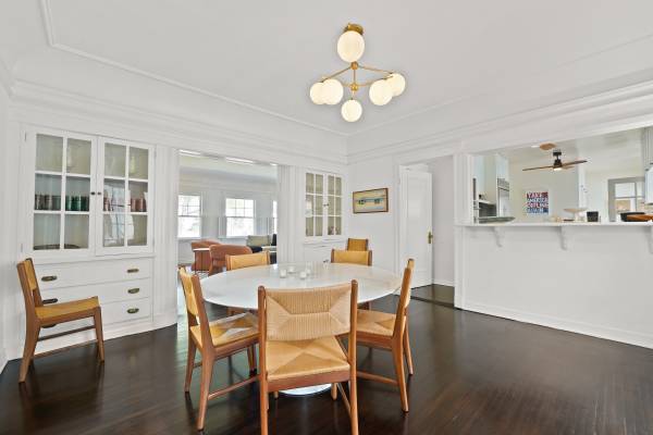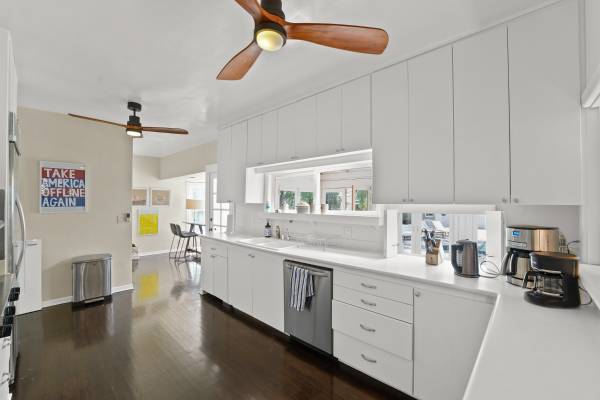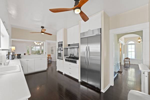 opens to the backyard and pool. Upstairs are 3 large bedrooms, laundry room, and 2 full baths – perfect for a family. Unique primary bedroom has a separate sitting room with front facing windows. Large windows throughout the home allow for natural light. Entire home has been refreshed while maintaining all of its