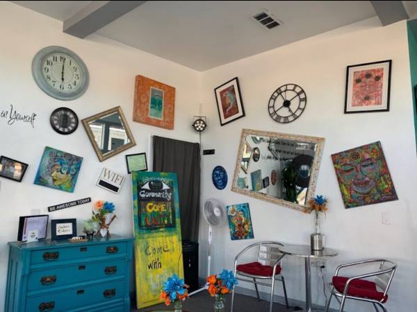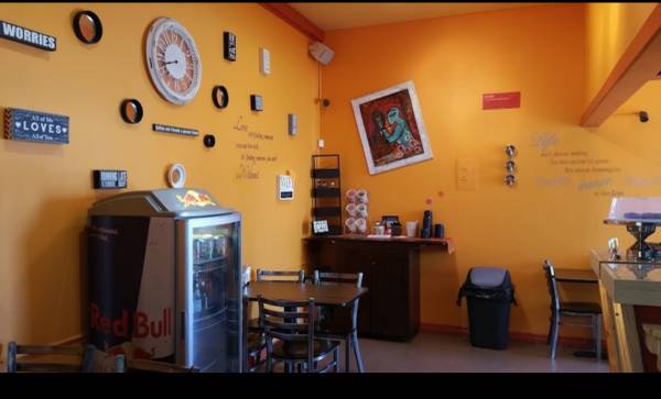 Coffee shop space - best location - near by the Forum- was it operated for several years with a lot of clients- have Kitchen to prepare foods n drinks (no cooking) - seating area - Patio - large yard for Events- visibility - corner - parking - Drive through possible- flex easy terms