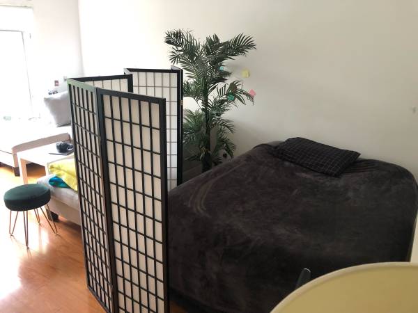 I am looking for a roommate in a studio apartment. Rent is due at move-in. Location: Inglewood (10 minutes to So-Fi stadium. 15 minutes to LAX airport) Room is divided by a room divider. Water,...