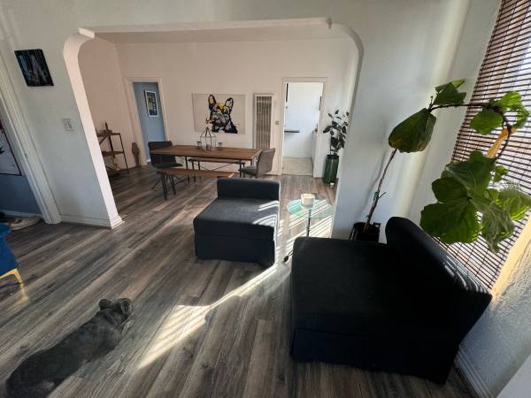 Welcome to a vibrant well lit home that has everything you need to enjoy a nice stay in this historic location. Johnny Depp’s apartment in the movie Ed Wood. A historic four Plex in the Fairfax, Beverly District . Just two short blocks from Fairfax Avenue, two long blocks to Melrose Avenue and two long blocks to the world famous Farmers Market/The Grove. Nestled perfectly in-between an array of activities, bars and restaurants within a 5 minute walk to all of it. Bus stop two short block away on Fairfax that takes you up to Hollywood Blvd/Metro Subway system. One 20min bus to Santa Monica. I have one bedroom available can take it furnished or unfurnished lots of furniture in the garage to play with for decor. If you’re able to make an extra meal at least six times a week a couple times a day for my dad next door? I will discount your rent and pay for the food. Discounted rent will be 1000 a month for the right person or regular rent would be 1500 a month. Feel free to hit me up with any questions. Thanks for reading.