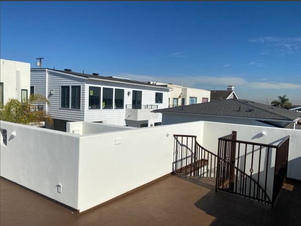 This is a modern four-level home with multiple bedrooms and large shared spaces. The best part is the roof deck with great views — perfect for relaxing or enjoying the sunset. Laundry is in the house. Manhattan Beach adjacent, about 5–10 minutes to Hermosa Beach, and the 405 freeway.