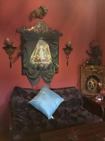 Cute, 2 bed, 1 bath Spanish, retro home. Large flowered, back yard with koi fish pond, tree house, statues and waterfall. Peaceful and quiet. Close to downtown Santa Monica and four blocks from Santa Monica College. Eclectic and artistic. Room has meditation elements.