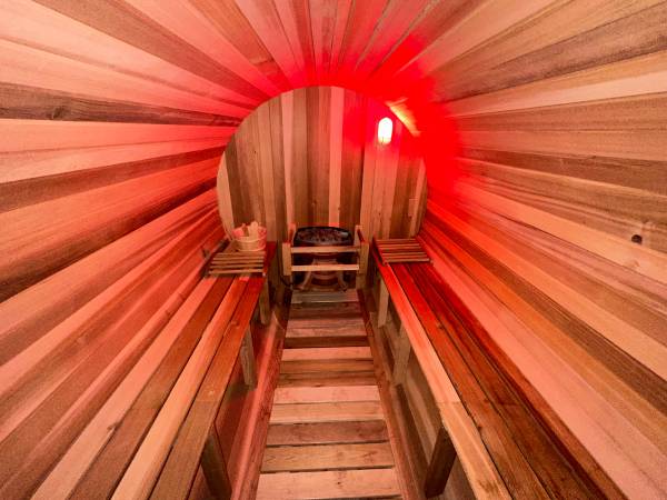 The home features an 800 square foot private rooftop patio plus an 8 foot authentic Finnish barrel sauna.