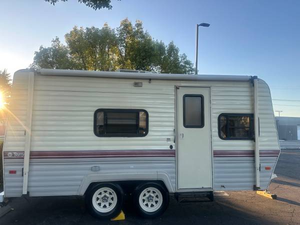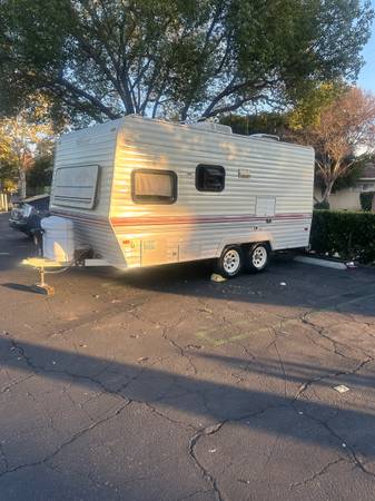 1991 terry Fleetwood 18 foot travel trailer. Everything works super clean and out always been maintained on time super easy to haul lightweight sleeps up to six people comfortably bunkbed as well shower, also comes with full bathtub bathroom, dining table, refrigerator stove, oven radio, AC heater propane tanks. Everything works ready to go currently registered up-to-date clean title. Firm price series inquiries only if interested please call 818-212-5600 to set up an appointment.