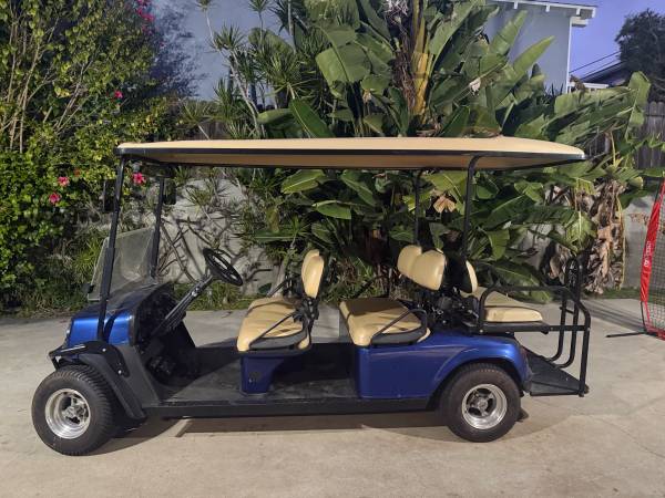 Golf cart seats 6 passengers. Used to cruise in town but is now just sitting in the garage. Runs fine but needs a few batteries to be replaced. We took that into consideration and dropped the price.