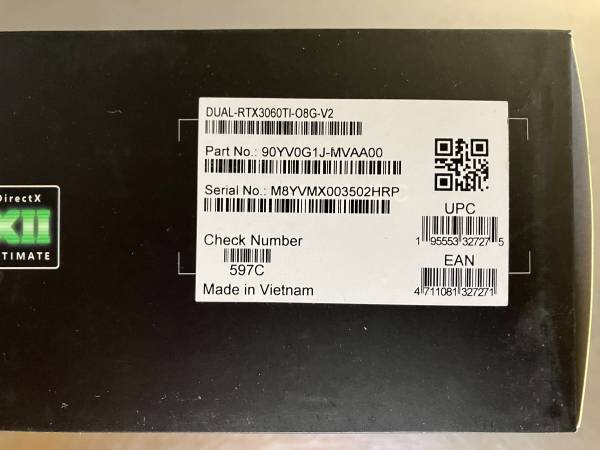 ASUS Dual RTX 3060ti 8GB V2 OC edition (LHR) - $260