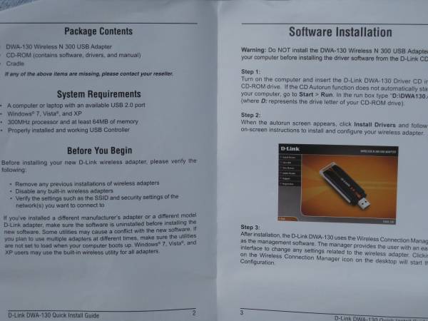 Complete with setup CD with software, user’s guide. Plugs into computer USB port to provide you with high-speed WIFI connection (300 Mbps). Has separate stand and USB cable for use with your desktop computer.