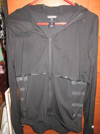 New Nylon/Spandex jacket with hood. Zipper, pockets etc. Champion Brand. Size Small. great for camping, jogging, anything outdoors! lightweight. Male or Female can wear this