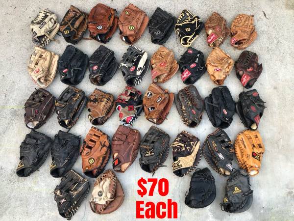 Baseball and Softball Gloves. Also have bats and other equipment available. Prices are all different. Some gloves are $30 $40 $50 + each and also have several bats available . Have other items like...