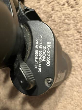 Excellent condition Bushnell Pacifica binoculars with 9-27x zoom and 50mm lens. Includes carry case.