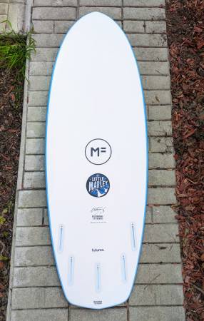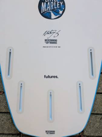 Mick Fanning Little Marley performance soft top surfboard in excellent condition Futures fin boxes 5'10" x 22 1/8" x 2 11/16" 43L If this ad is still up, it's still available.