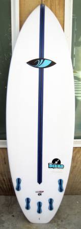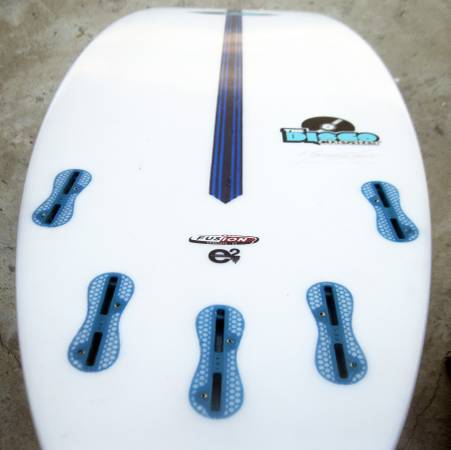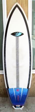 5'8" x 19.5" x 2.45", 28.6L, Fusion e2 epoxy foam, stringerless design with carbon fiber flex stringers deck/bottom, the board is in excellent shape, almost no pressures on deck, none on the bottom, trackpad is brand new. FCS2 fin system. The only blemish is on the nose. Watertight and ready to ride.