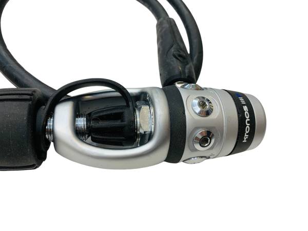 Description: Embark on your underwater adventures equipped with the AquaLung Kronos Supreme 1st & 2nd Stage Dive Regulator (Yoke). While the last service date is unknown and its condition is uncertain, it appears to be in good cosmetic condition, albeit a little dusty. This set includes the box, manual, and an extra mouthpiece for added convenience. Please note that we are not experts in this item, so careful inspection and servicing before use are recommended. For a closer look, please view the provided pictures.