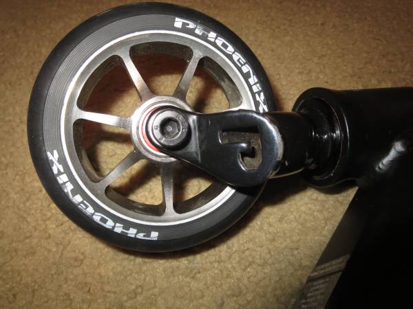 Like new Phoenix Session Pro Scooter that has very light riding from young child. With flash on camera you can see every little scratch.