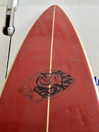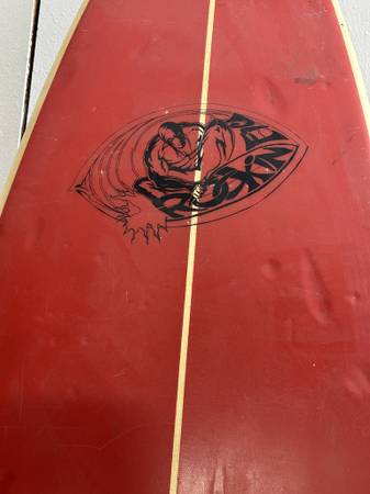 Super Nice Cherry Red Rocking Fig Thruster Surfboard.