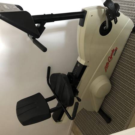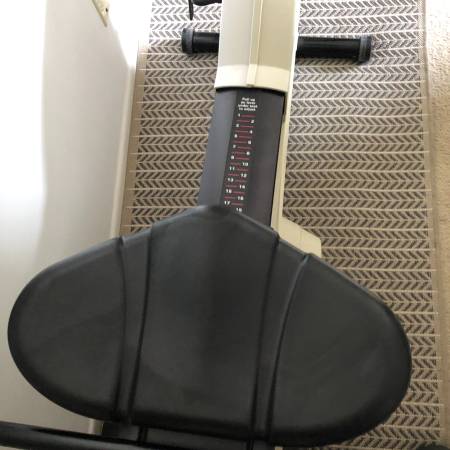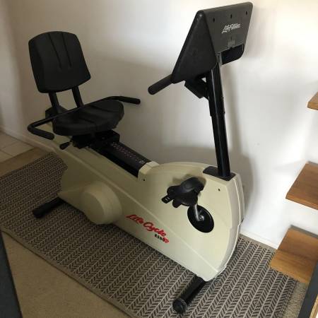 Sturdy recumbent exercise bike with adjustable seat and built-in workout programs.