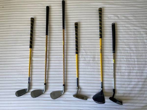 Kids Golf Club Set - set of 6 clubs Used Set Includes: (left to right) #1 - Junior Tour Logic -23" #2 - Junior Tour Logic - 27" #3 - Dunlop - Logic - Crazy Long Junior - 29 1/2" #4 - Lynx #1 - 22" -...