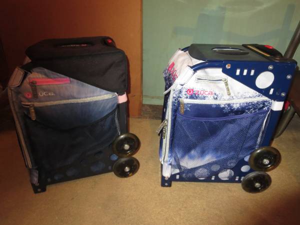 2 like new ZUCO rolling ice skate bags 35 each. All zippers work and wheels light up