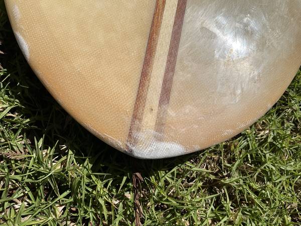 As you can see in the photos, the board has some pressure dings but has always been professionally repaired and stored indoors. There is no delamination. Although it hasn't been used in a few years, it is not currently watertight due to a chip on the nose that occurred in my garage.