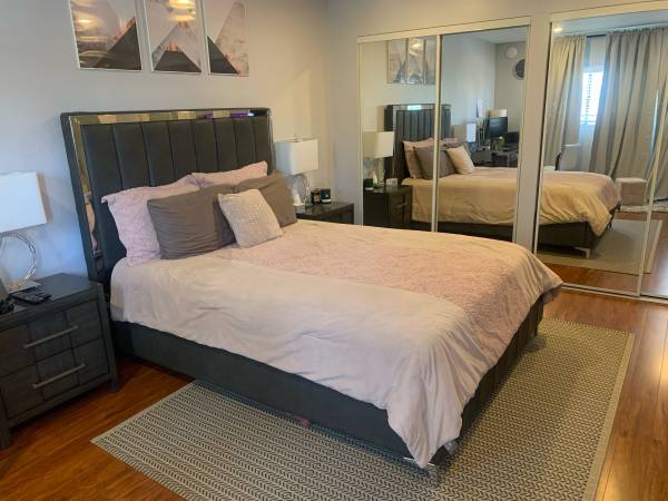 Hi there! I’ll be relocating for work for a few months and am looking to rent out my master bedroom with a private attached bathroom in my modern, fully furnished 3-bedroom Baldwin Hills townhome-style condo, 10 minutes from Apple and Amazon offices in Culver City, 15 minutes from Venice and Hawthorne, and 20 mins from Santa Monica.